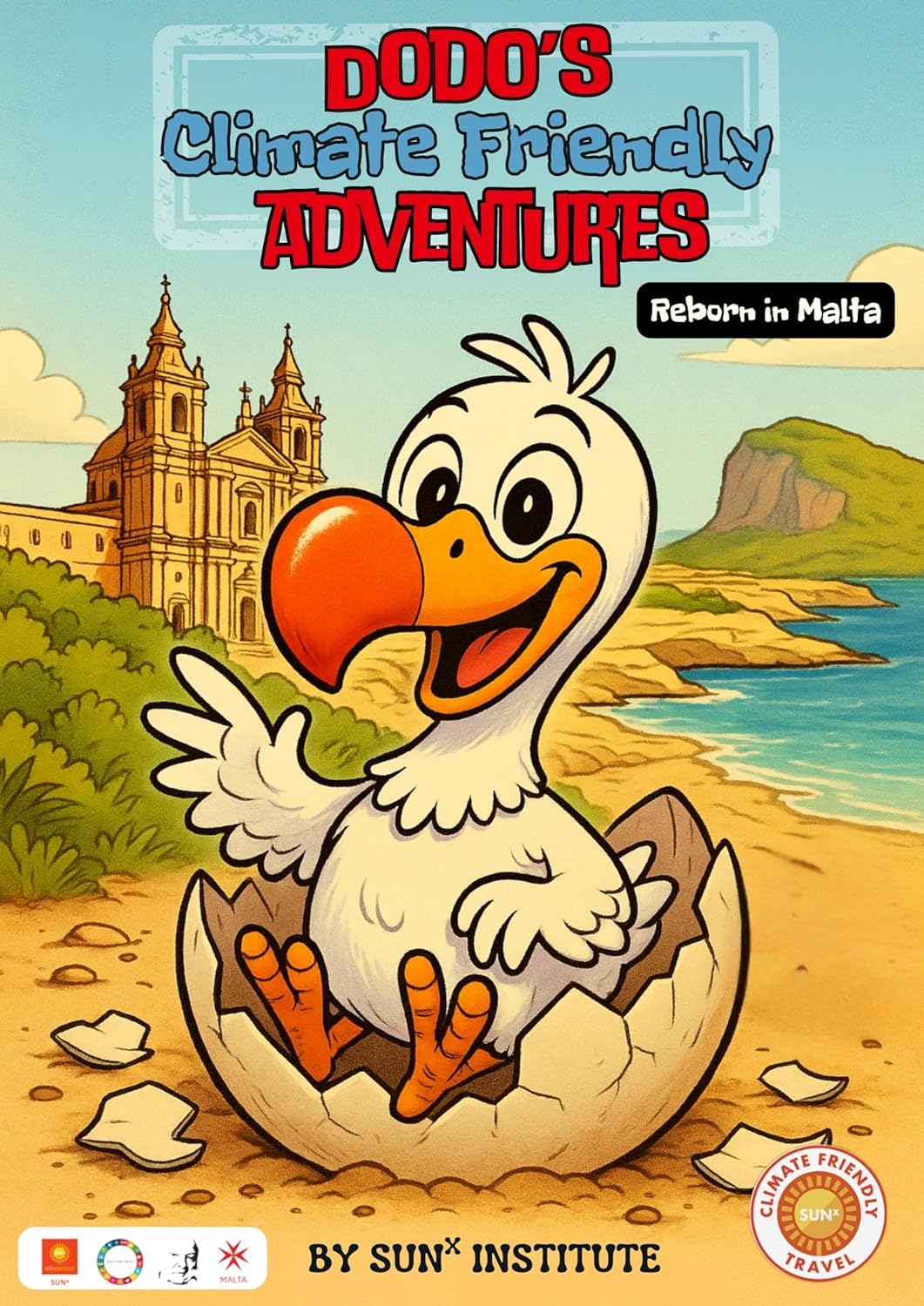 Dodo’s Climate Friendly Travel Adventures – Malta is an upcoming e-book featuring the character Dodo—a friendly, flightless bird symbolizing environmental awareness. This educational book is part of the SUNx Program’s initiative to promote Climate Friendly Travel among young readers. In this adventure, Dodo explores the rich cultural heritage and natural beauty of Malta, learning about sustainable travel practices and the importance of environmental conservation. Through engaging storytelling and vibrant illustrations, the book aims to inspire children to appreciate and protect our planet while discovering the wonders of travel.